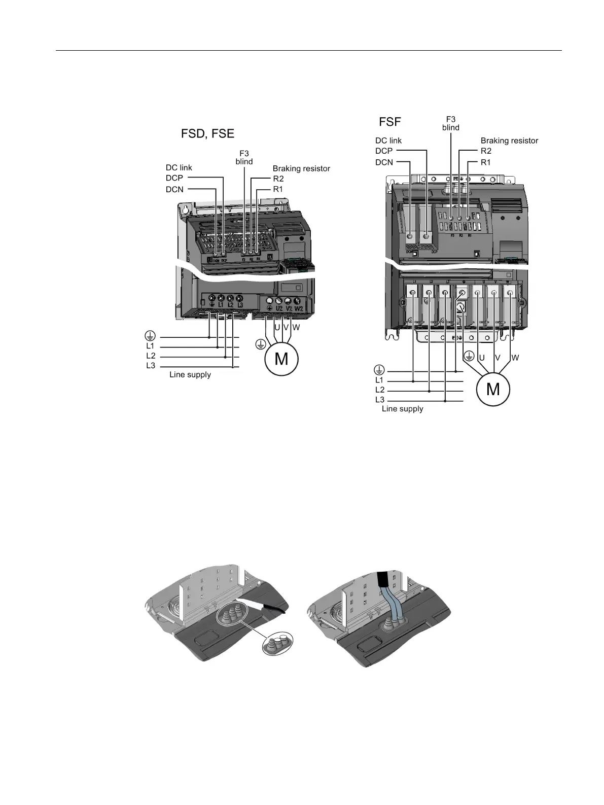 Figure 5-7 Line and motor connection PM240-2, FSF
