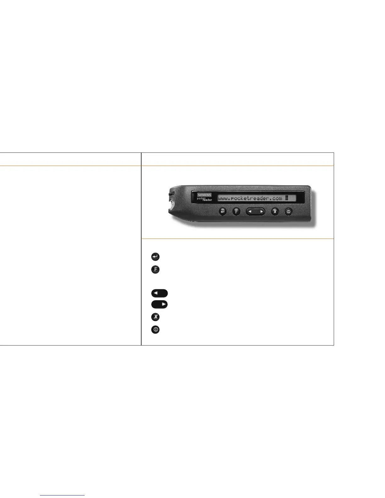 There are six buttons on the Pocket Reader. Here's what each is for: