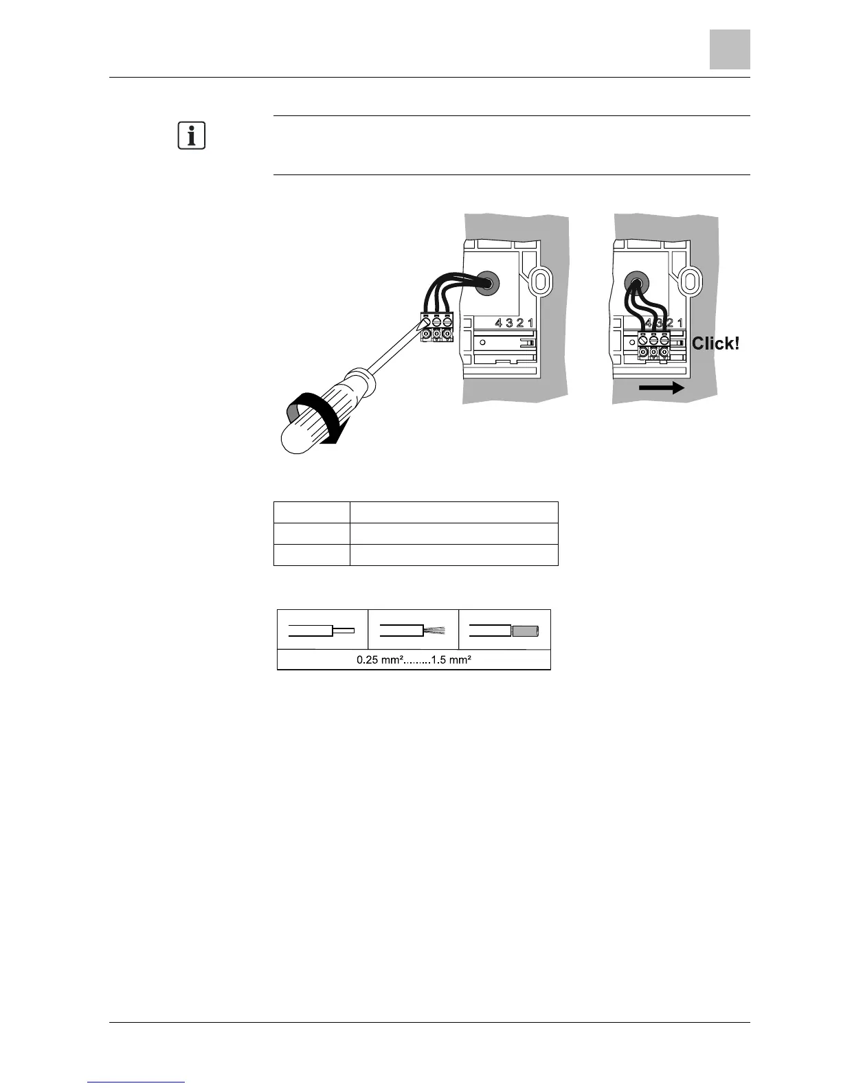 Flexible cables are easier to mount on the green screw terminals, if the terminals