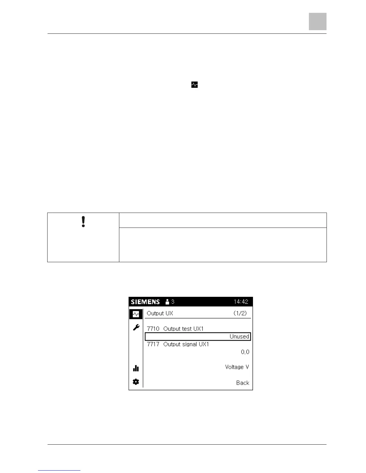 2. Turn the control knob until the setting value for "Output test UX1" is highlighted.