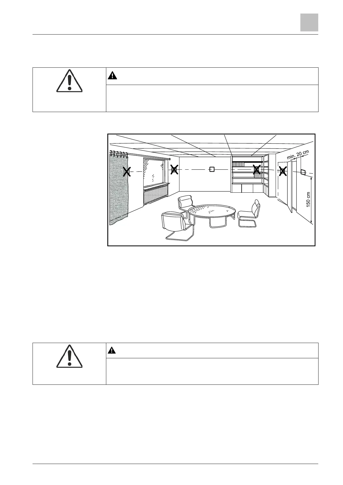 ● Do not mount the devices in recesses, shelves, behind curtains or doors, or