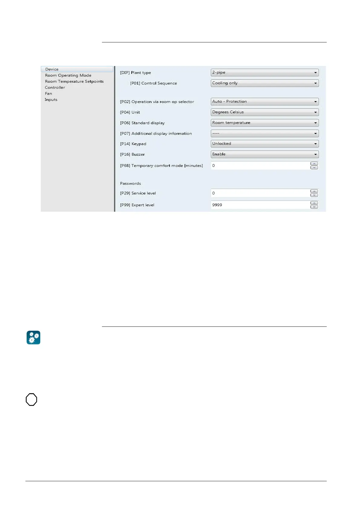 Setting RDF800KN../RDF800KN/VB/RDD810KN.. KNX parameters is only
