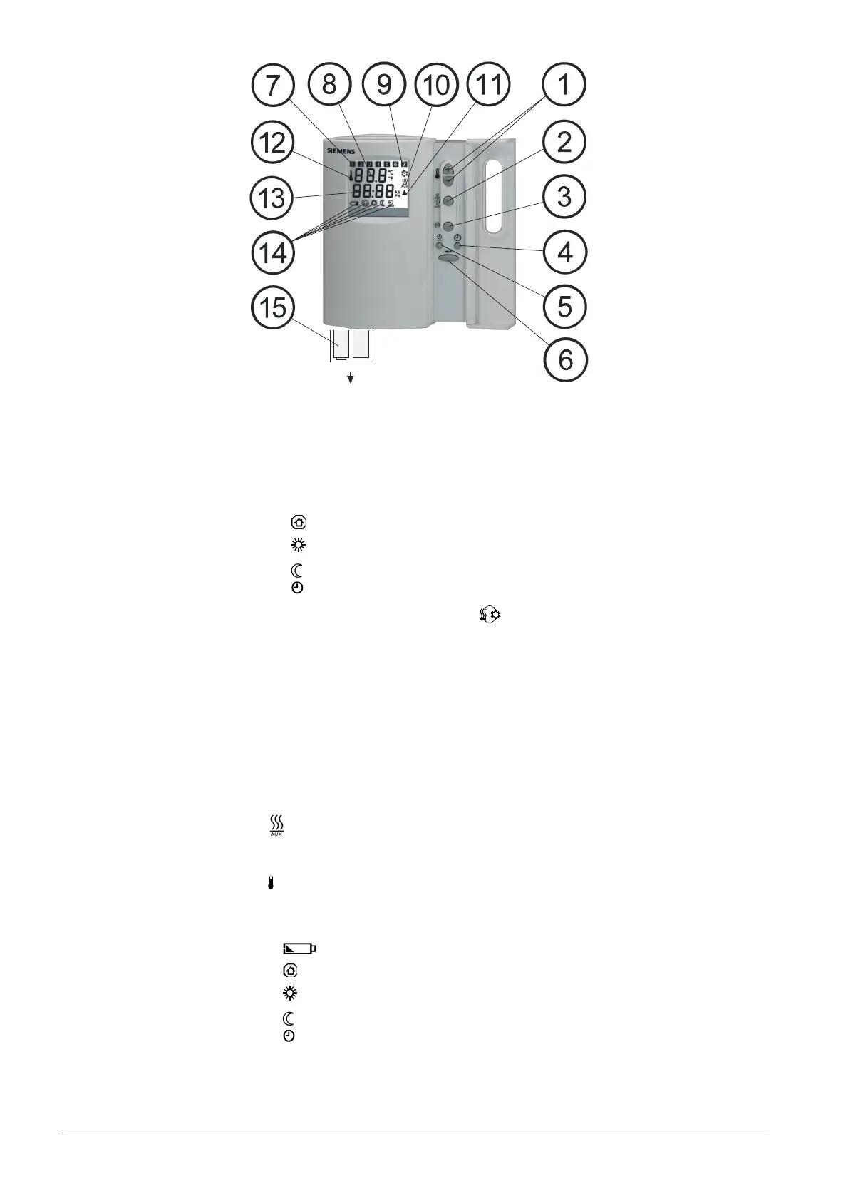 1 Buttons + and - for adjusting the setpoints, the control parameters, the days of