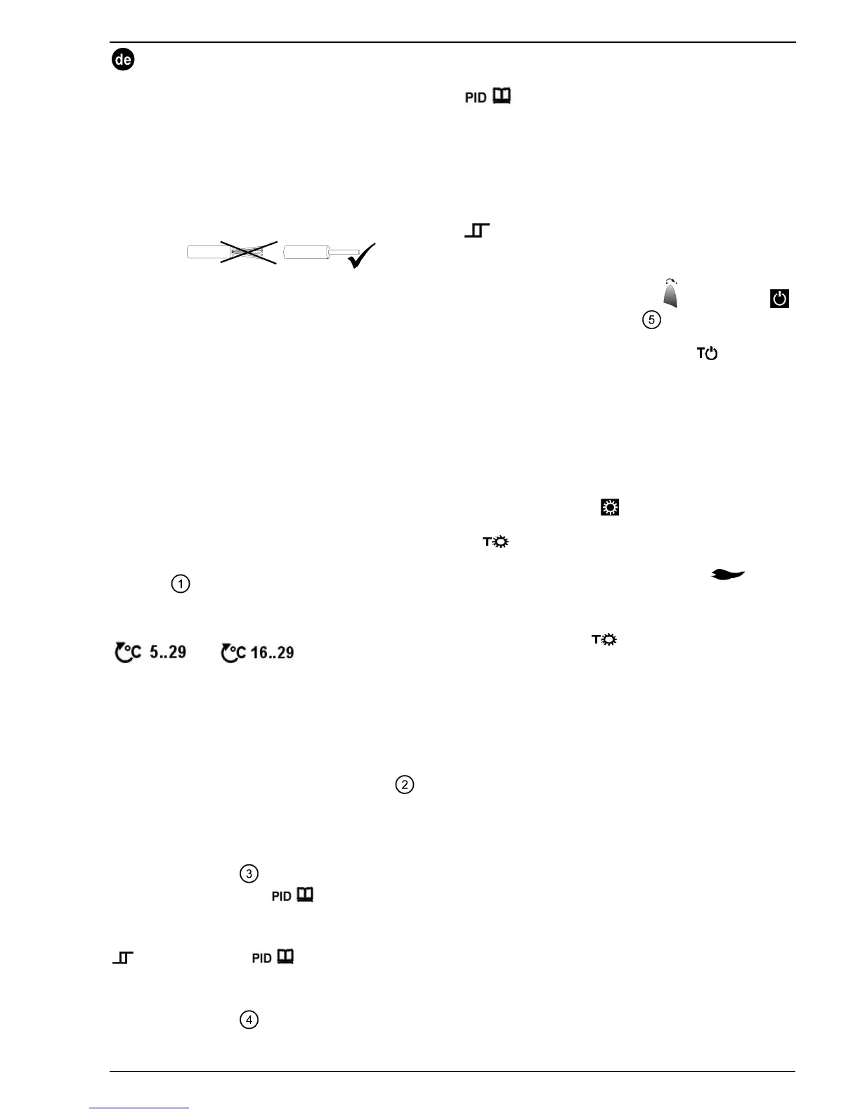 Durch Drücken akzeptieren. 5...29 °C blinkt