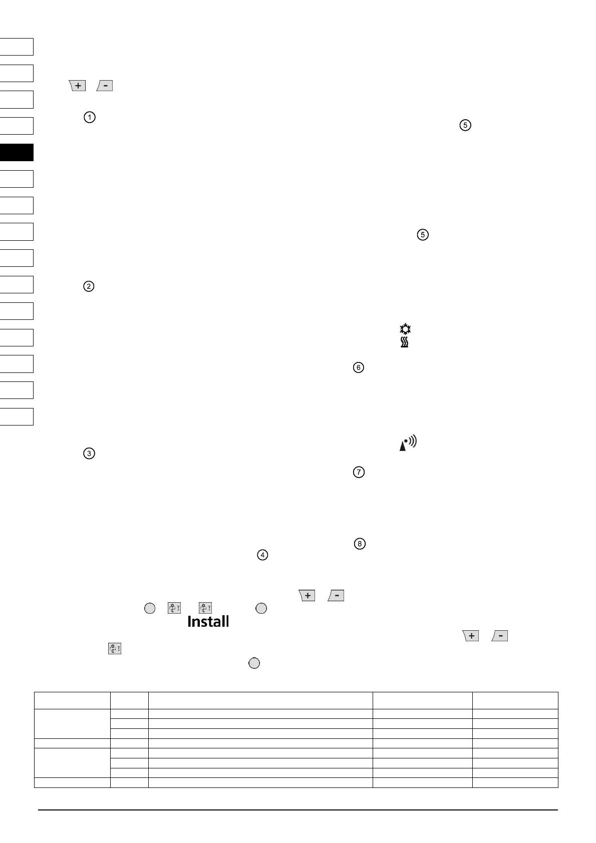en , laat los en houd nog eens 3 seconden ingedrukt. Zo krijgt u toegang tot het installateurniveau, waar u