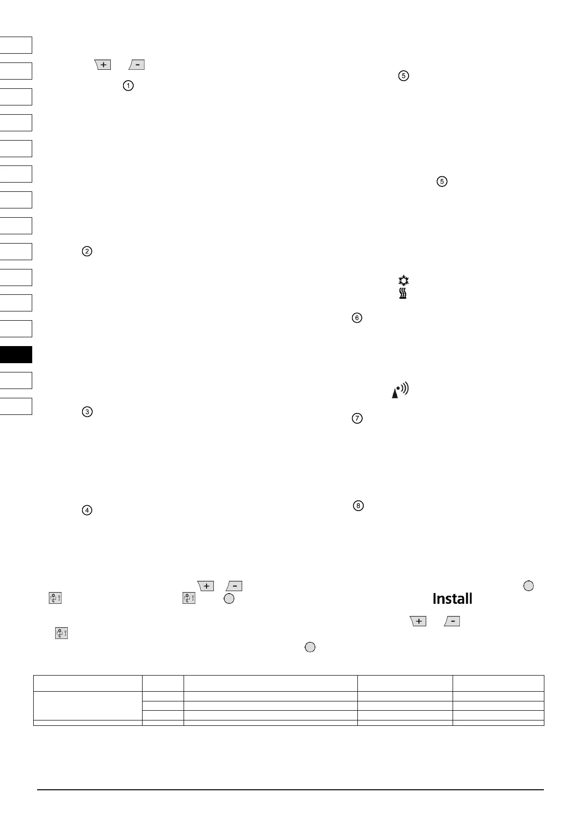 I displayet vises sprogmulighederne begyndende med koden 00. Der kan navigeres i ekspertindstillingerne med