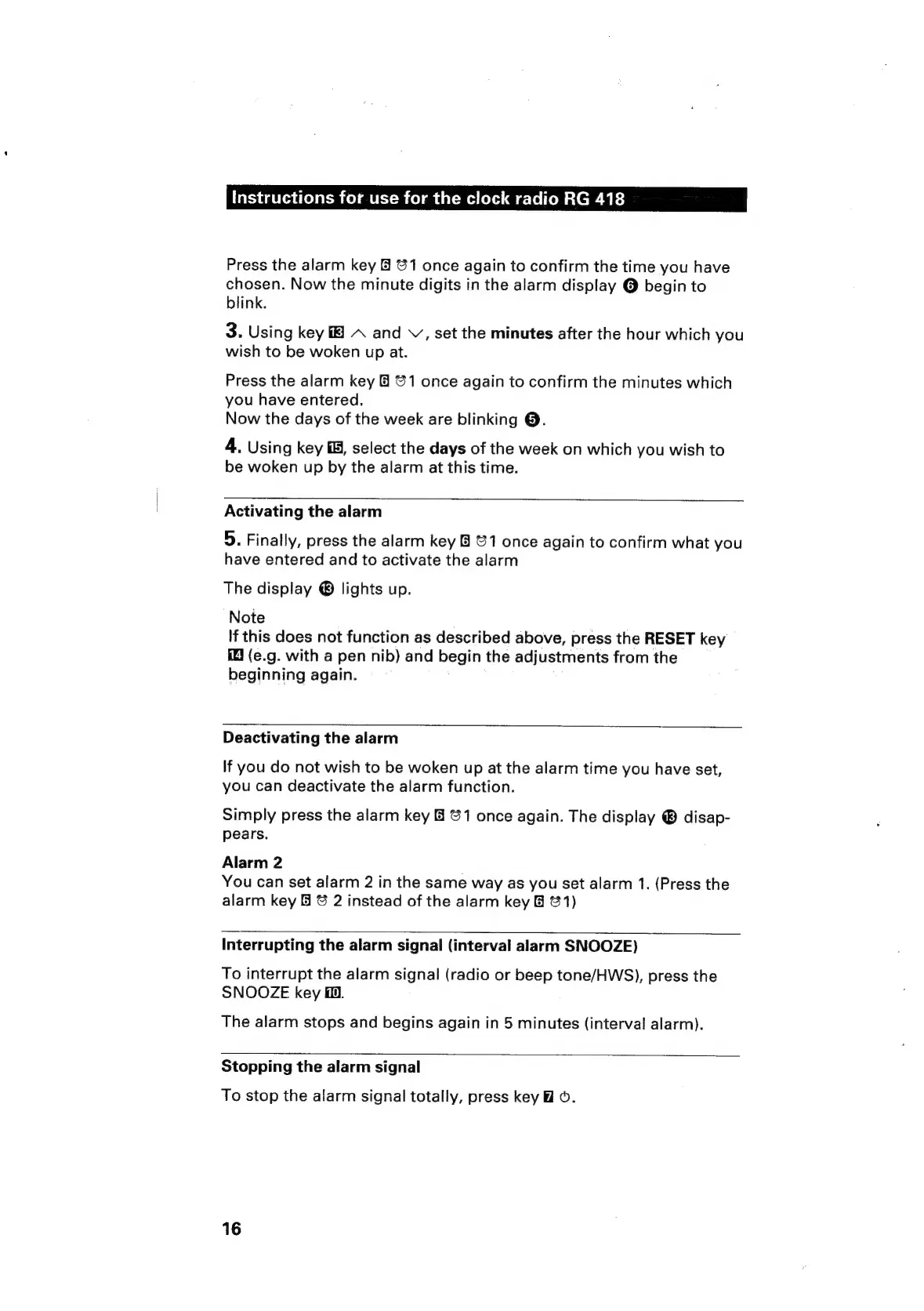 Siemens RG 418 - Alarm Activation and Control; Activating the Alarm; Deactivating the Alarm; Interrupting Alarm Signal