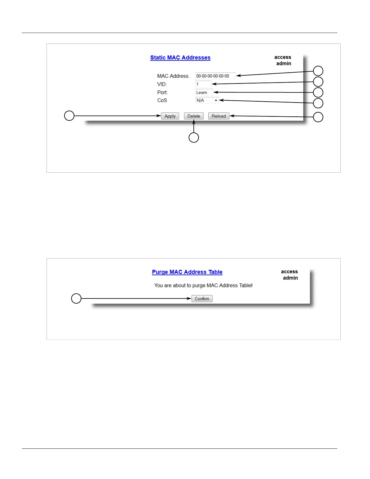 1. Navigate to MAC Address Tables» Purge MAC Address Table . The Purge MAC Address Table form