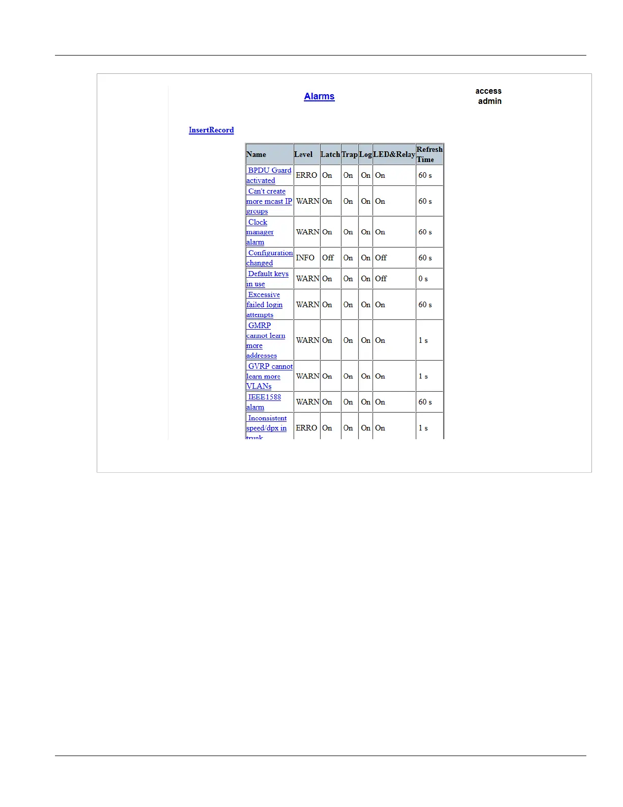 Figure 69: Alarms Table