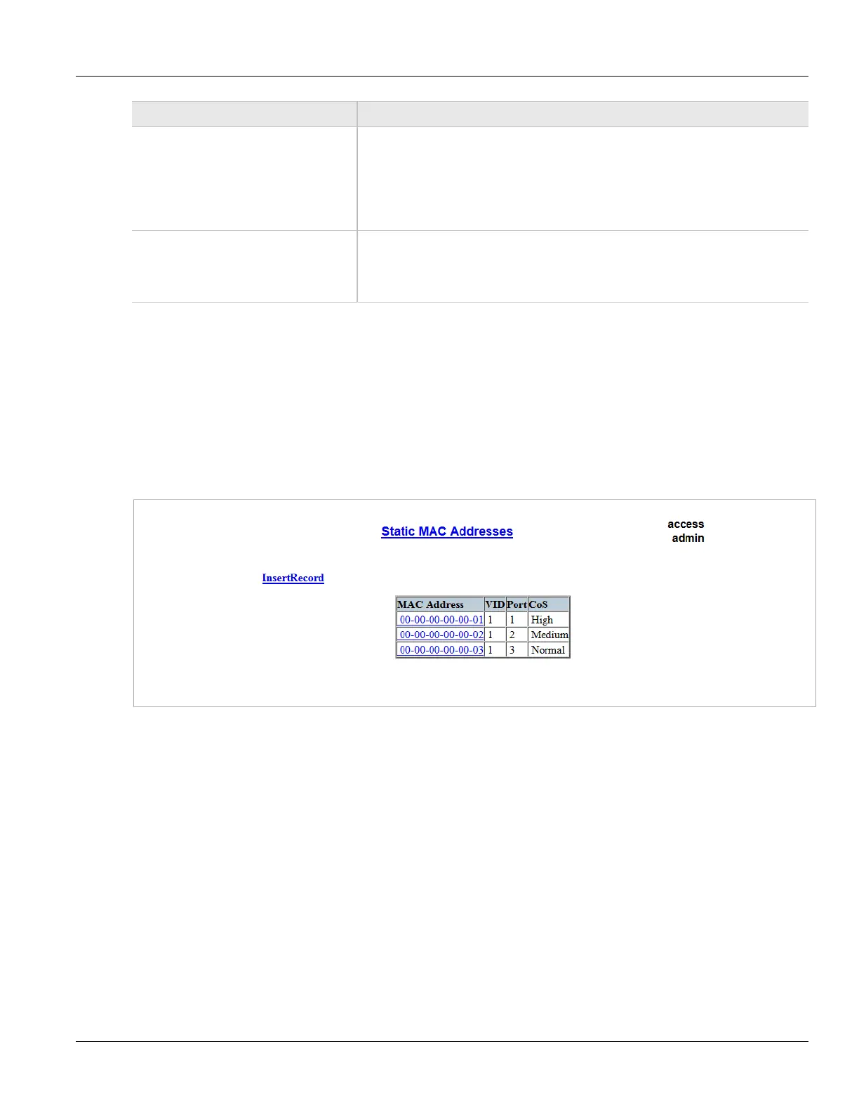 1. Navigate to MAC Address Tables » Configure Static MAC Addresses. The Static MAC Addresses table