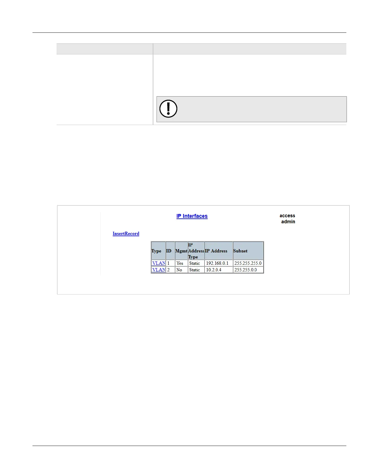1. Navigate to Administration » Configure IP Interfaces. The IP Interfaces table appears.