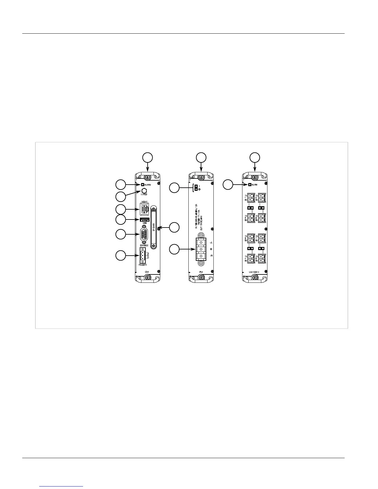 1.Control Module 2.Power Supply Module 3.Line Module (Typical) 4.Alarm Indicator LED 5.Lamp Test/Alarm Cut-Off (LT/ACO)