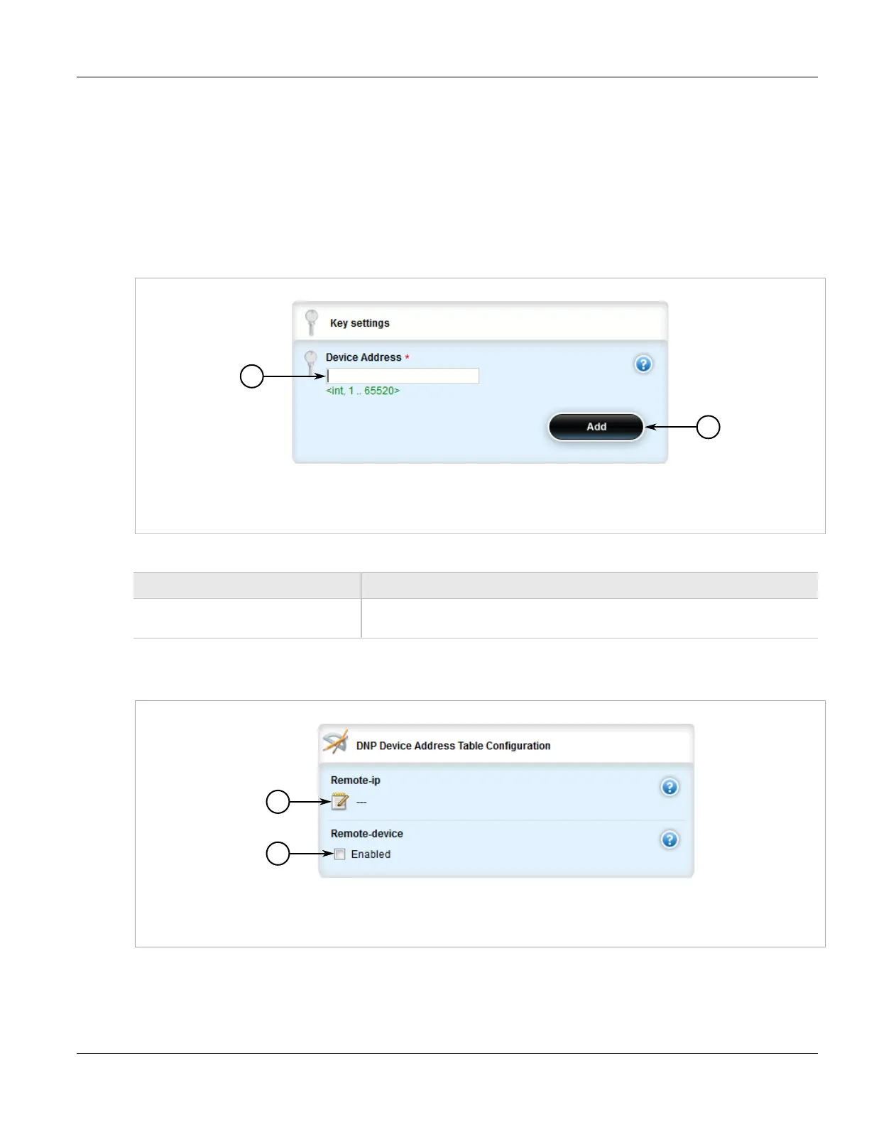 5. Click Add to create the Device Address table. The DNP Device Address Table Configuration form
