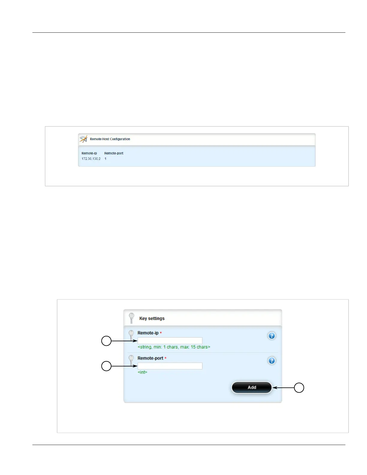 1. Remote IP Box 2. Remote Port Box 3. Add Button