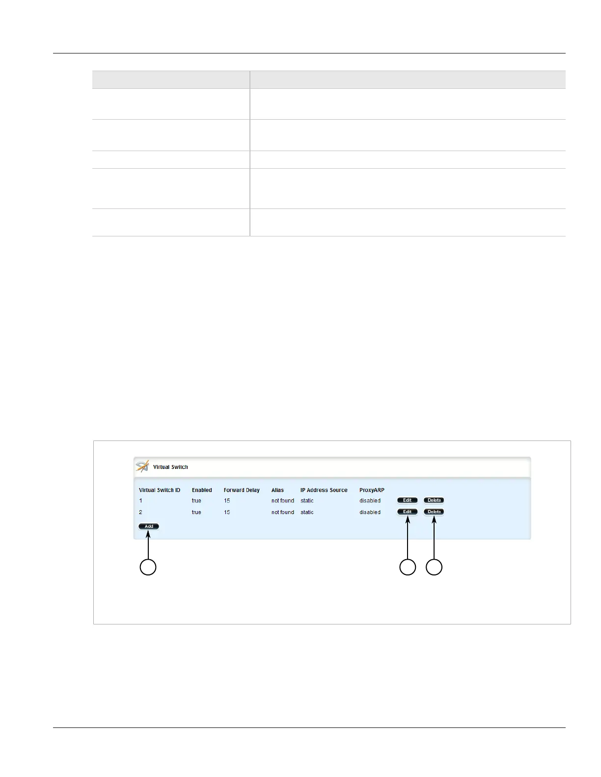2. Navigate to interface » virtualswitch. The Virtual Switch table appears.