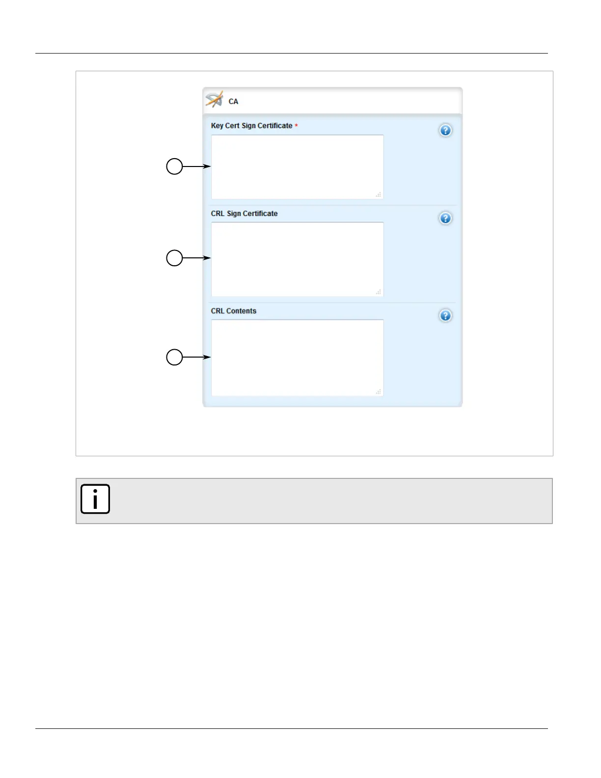 • If the CRL is signed by a separate certificate, copy the contents of the CRL into the CRL Sign Certificate