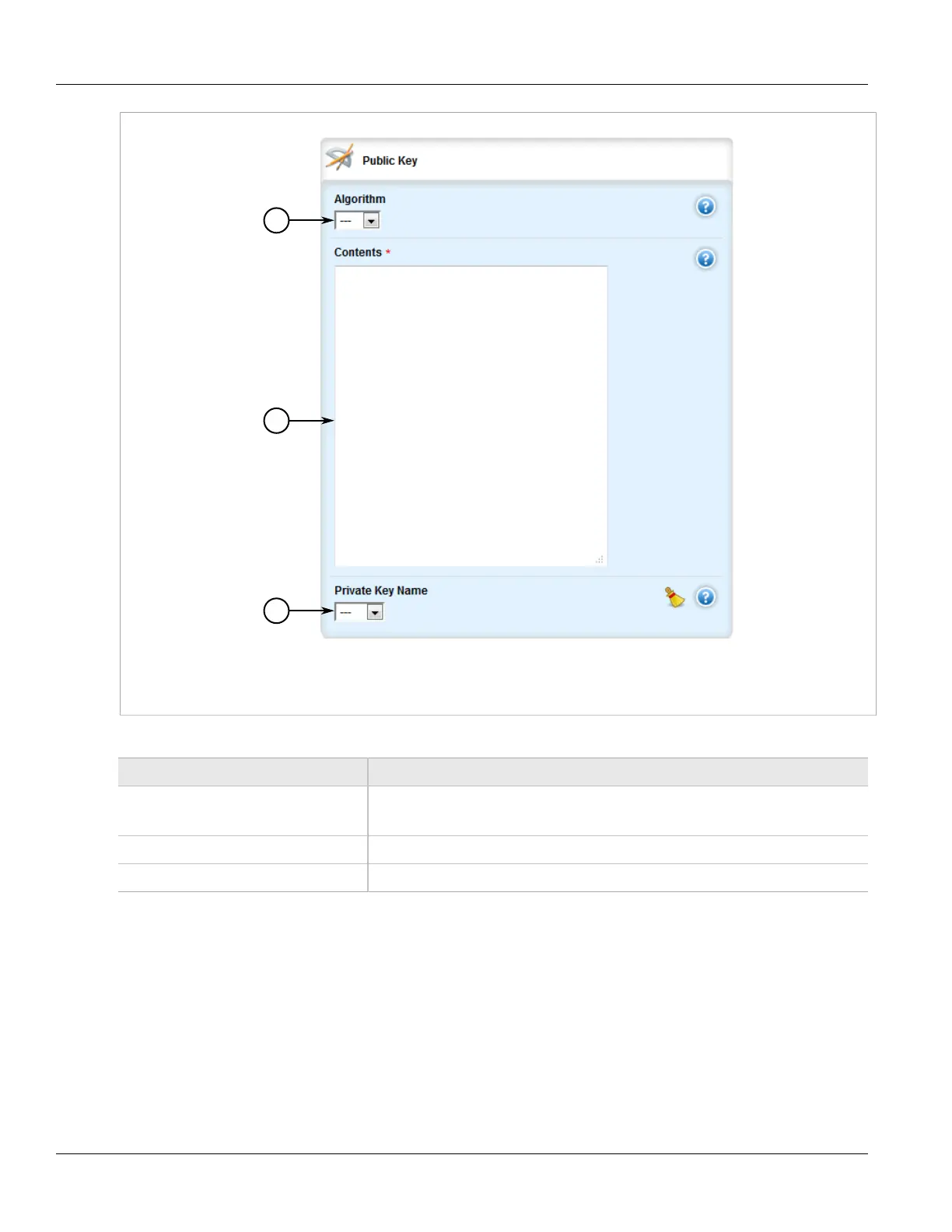 1. Algorithm List 2. Contents Box 3. Private Key Name Box
