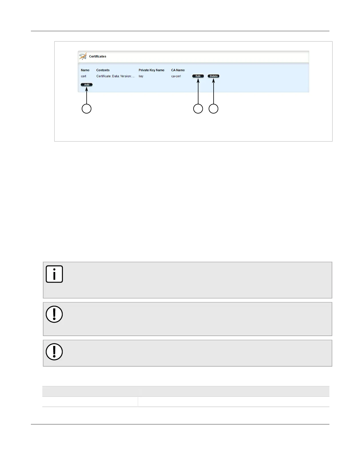 Figure 225: Certificate Table
