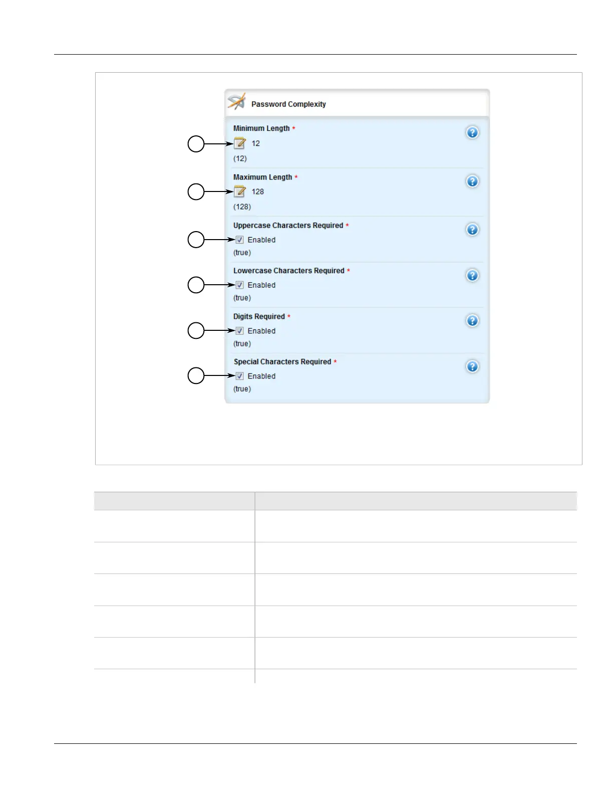 1. Minimum Length Box 2. Maximum Length Box 3. Uppercase Characters Required Check Box 4. Lowercase Characters