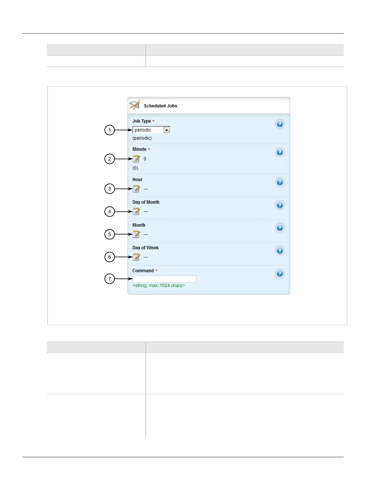 1. Job Type List 2. Minute Box 3. Hour Box 4. Day of Month Box 5. Month Box 6. Day of Week Box 7. Command Box