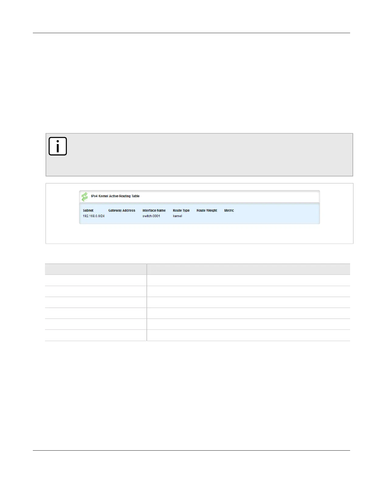 routes have been configured, the IPv4 Kernel Active Routing table appears.