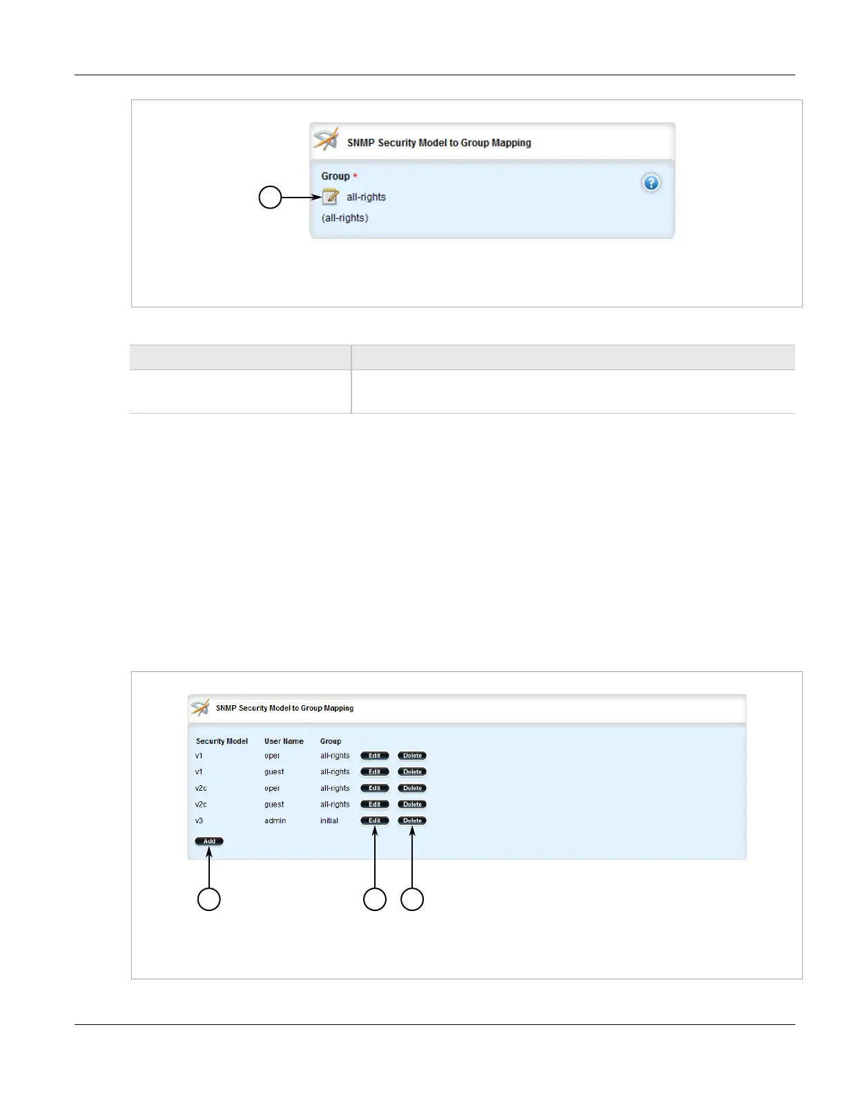 2. Navigate to admin » snmp » snmp-security-to-group. The SNMP Security Model to Group Mapping