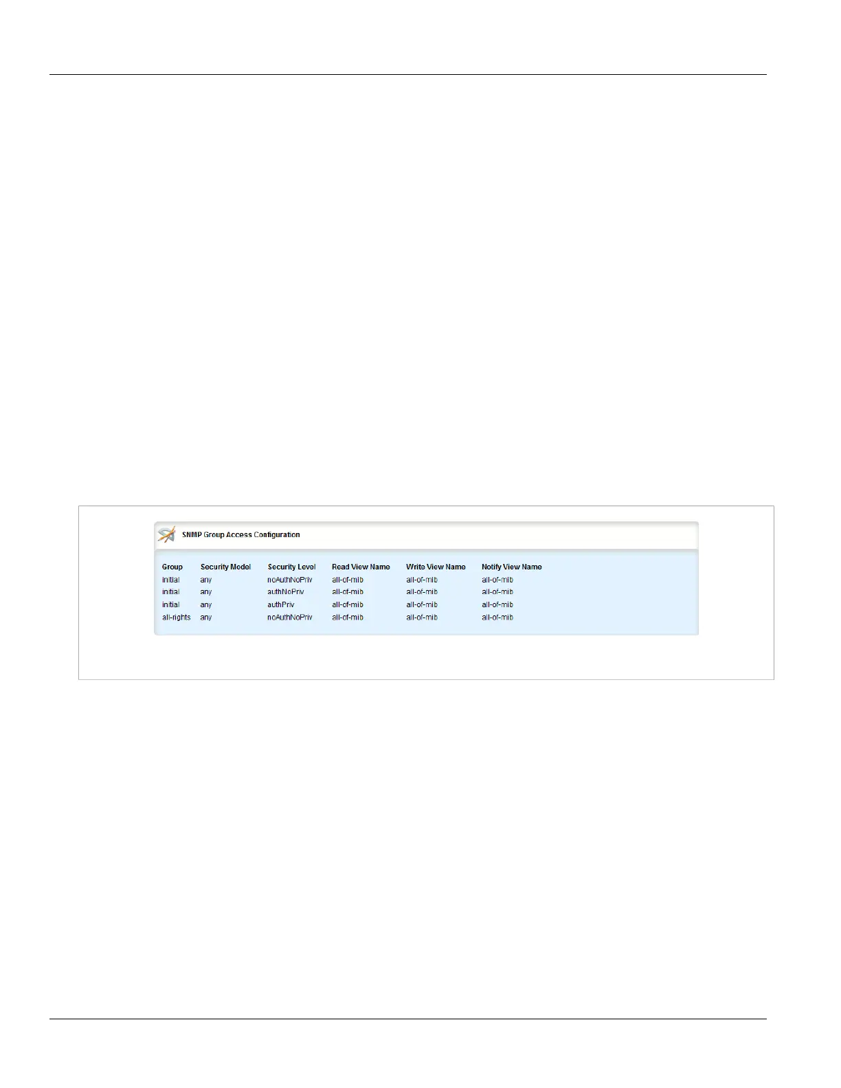 If no SNMP groups have been configured, add groups as needed. For more information, refer to Section 5.11.9.2,
