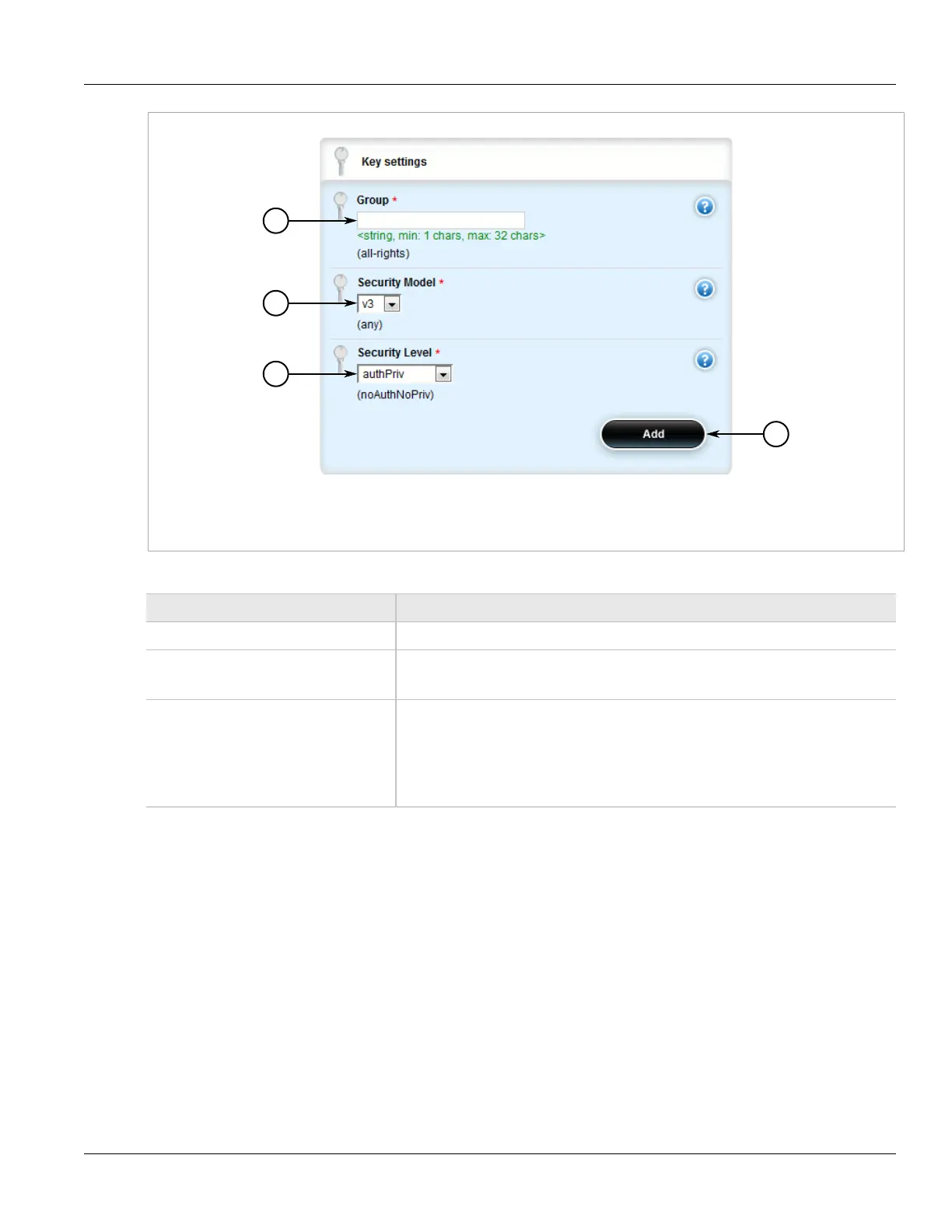 1. Group Box 2. Security Model List 3. Security Level List 4. Add Button