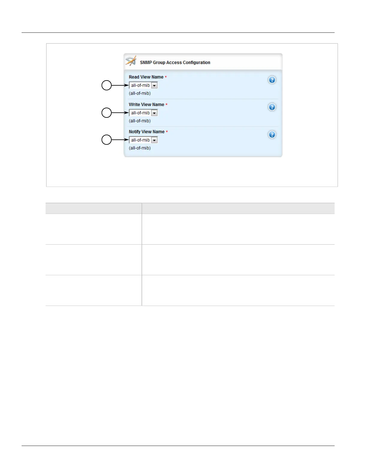 2. Navigate to admin » snmp » snmp-group. The SNMP Group Access Configuration table appears.