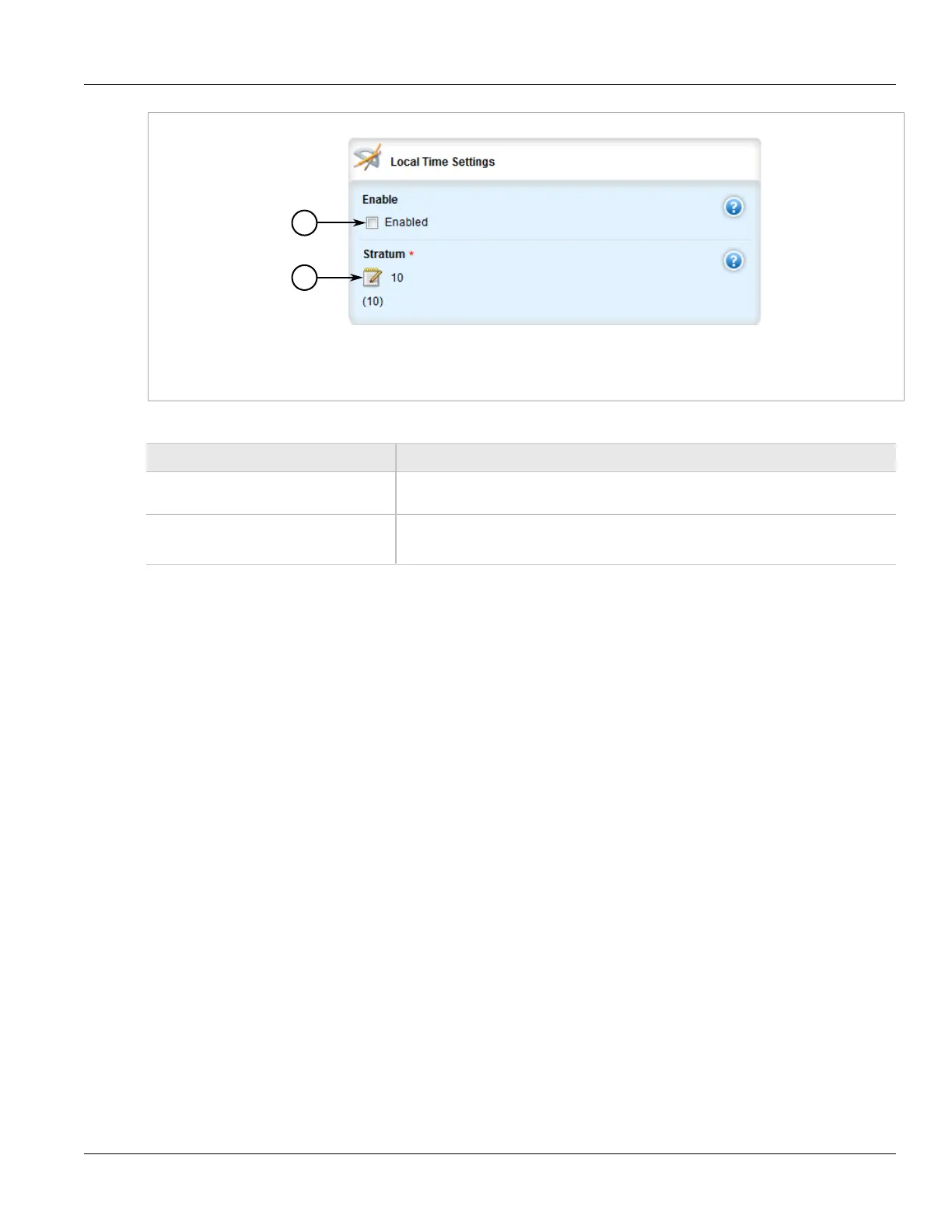 Enable Enables the local clock. The NTP daemon will use the local clock as the NTP source.