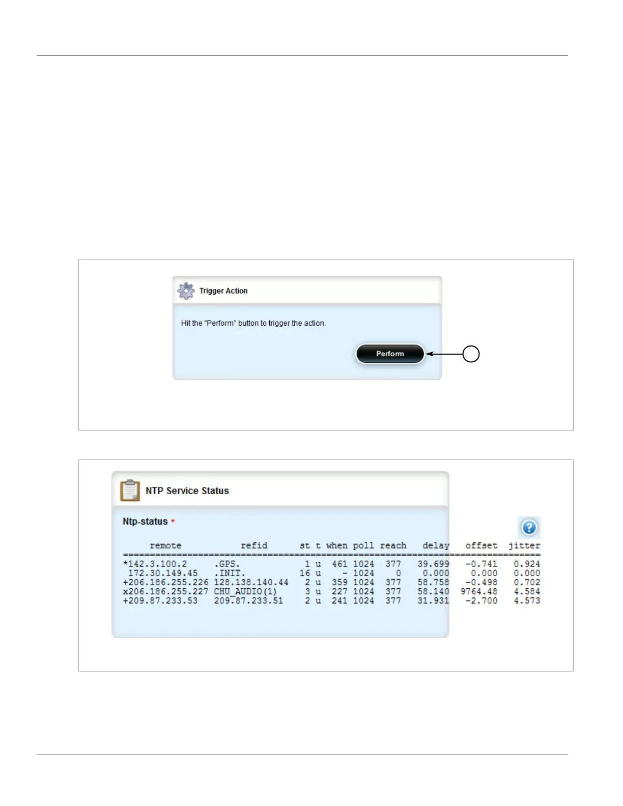 2. Navigate to services » time » ntp and click ntp-status in the menu. The Trigger Action form appears.