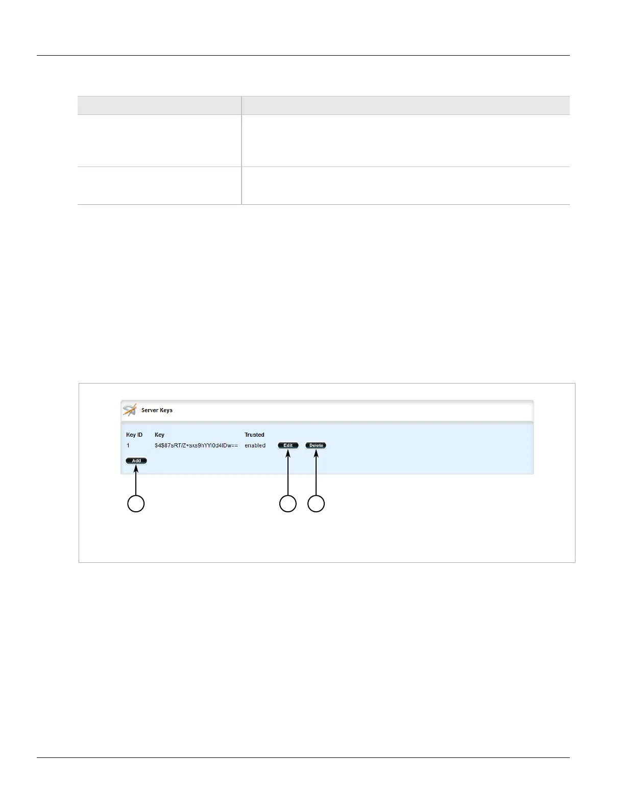 2. Navigate to services » time » ntp » key. The Server Keys table appears.