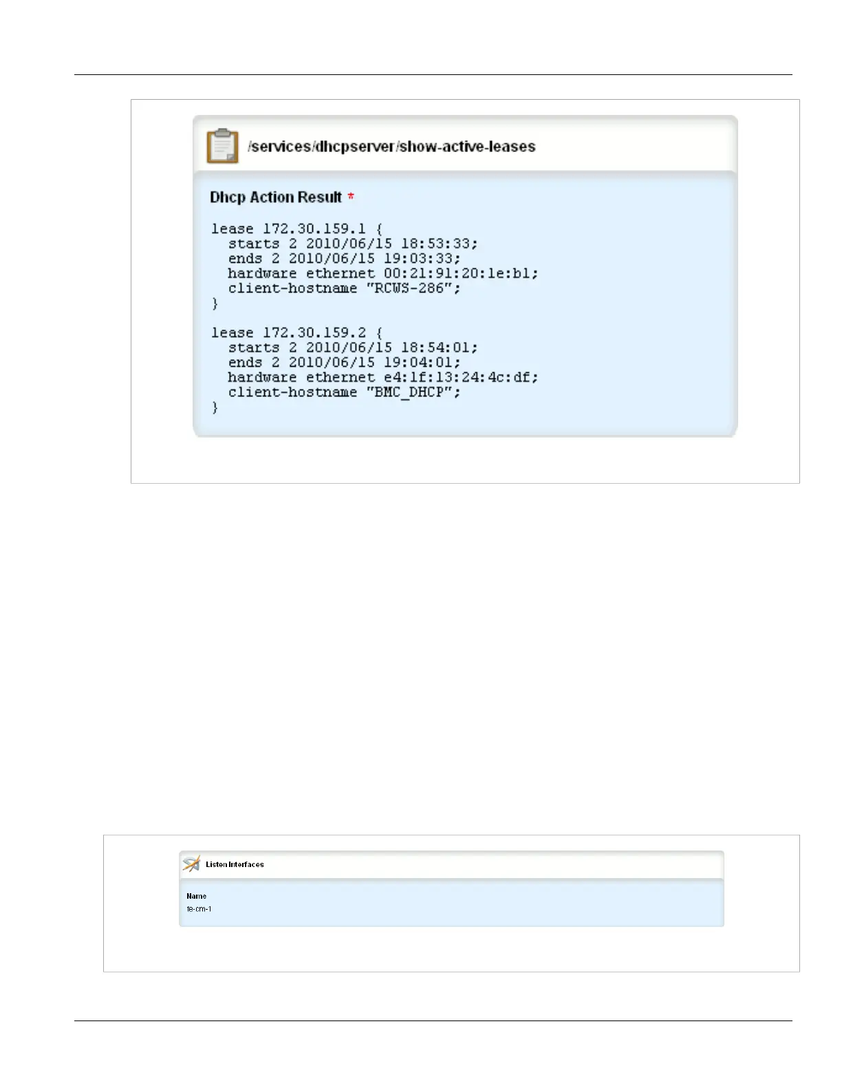To view a list of DHCP listen interfaces, navigate to services » dhcpserver » interface. If DHCP listen interfaces