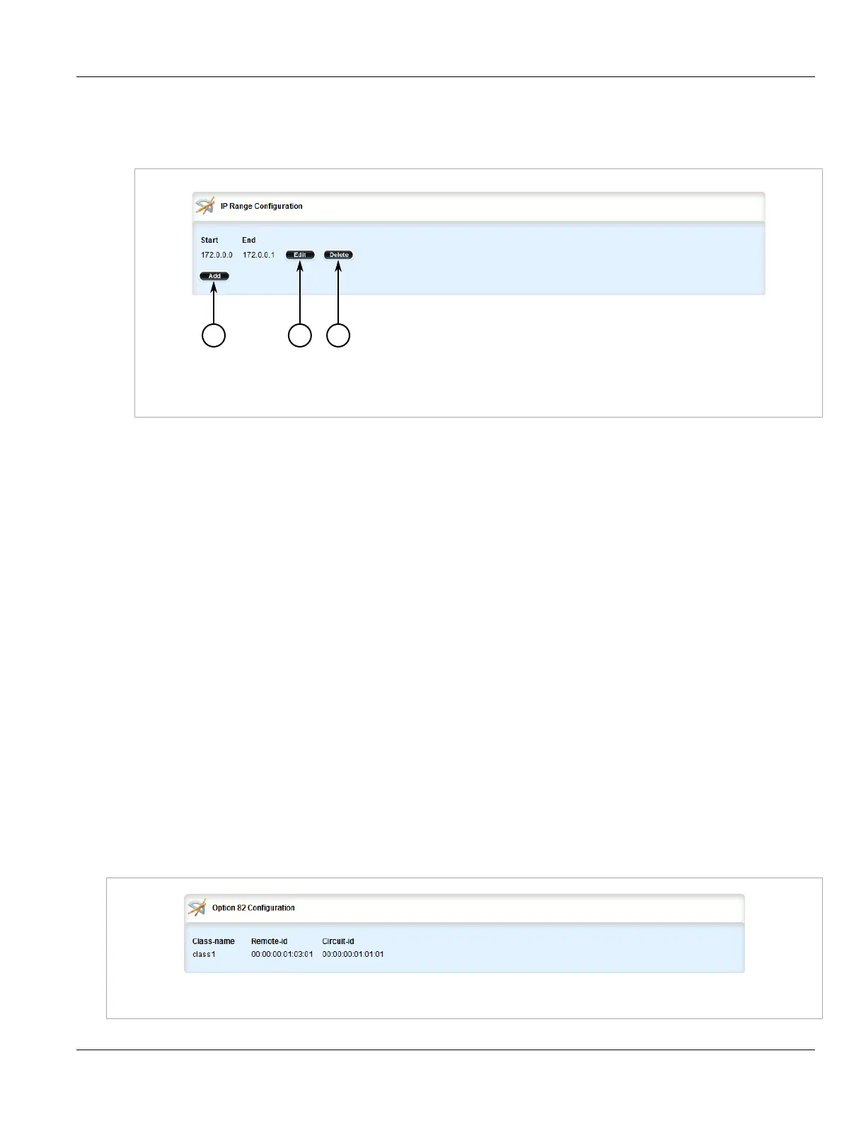 • Section 5.15.16.2, “Adding an Option 82 Class to an IP Pool”