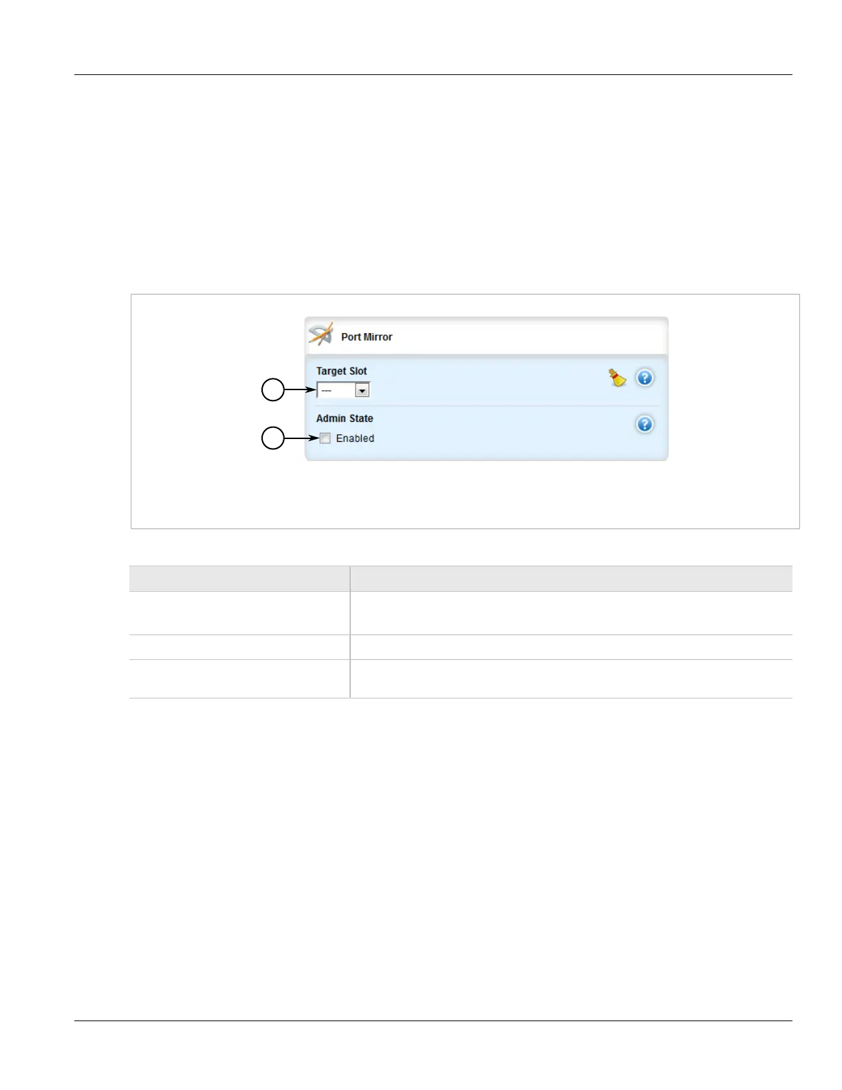 Admin State Enabling port mirroring causes all frames received and/or transmitted by the source port