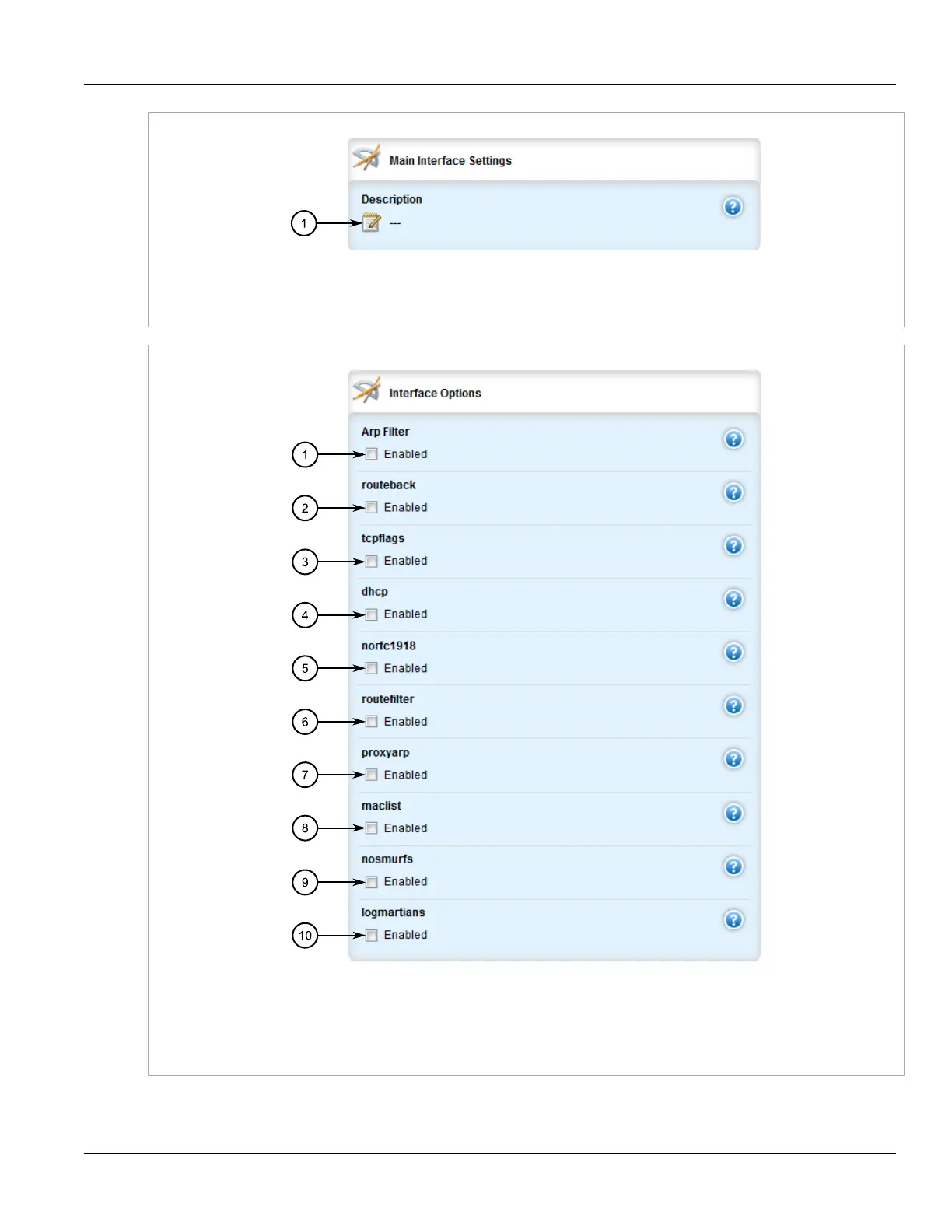 Box 6. Route Filter Check Box 7. Proxy Arp Check Box 8. MAC List Check Box 9. No Smurfs Check Box 10. Log Martians