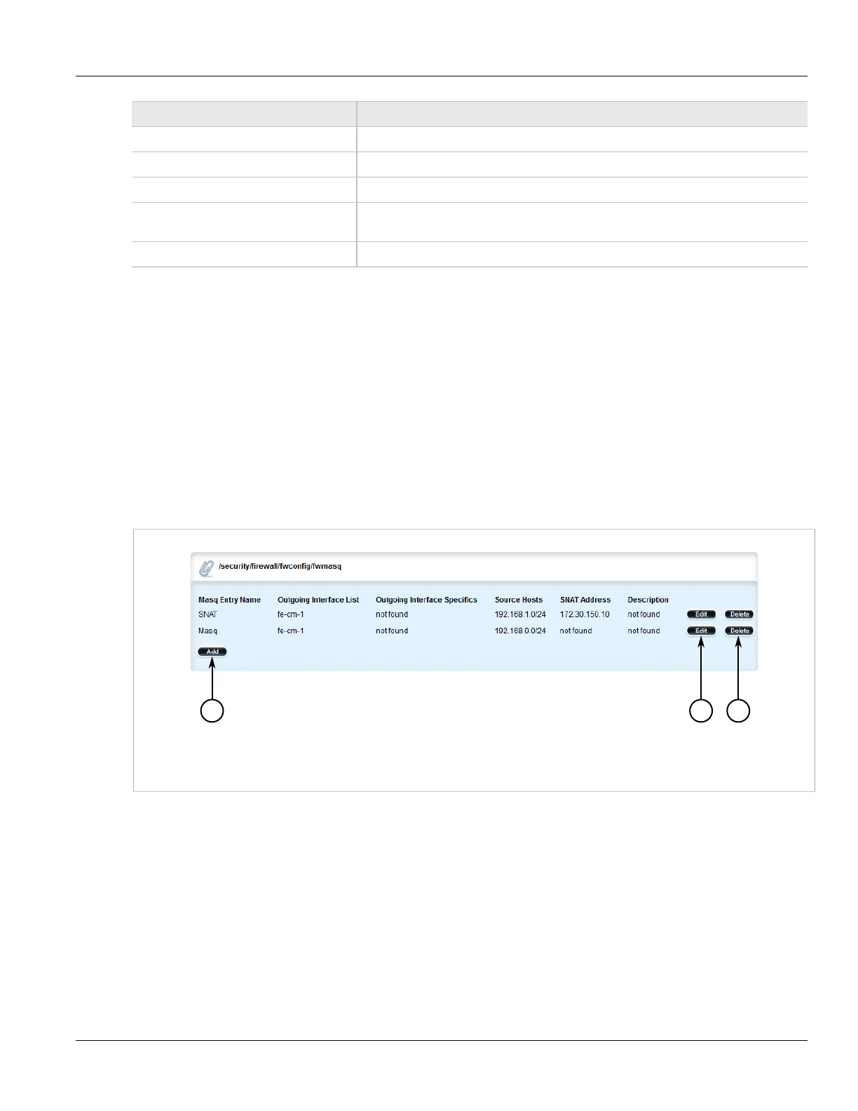 3. Click Delete next to the chosen masquerade or SNAT setting.