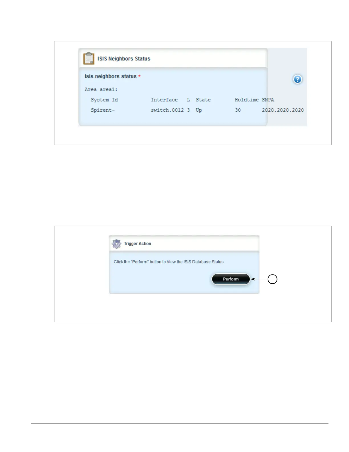 isis » isis-database-detail-status for a more detailed view. The Trigger Action form appears.