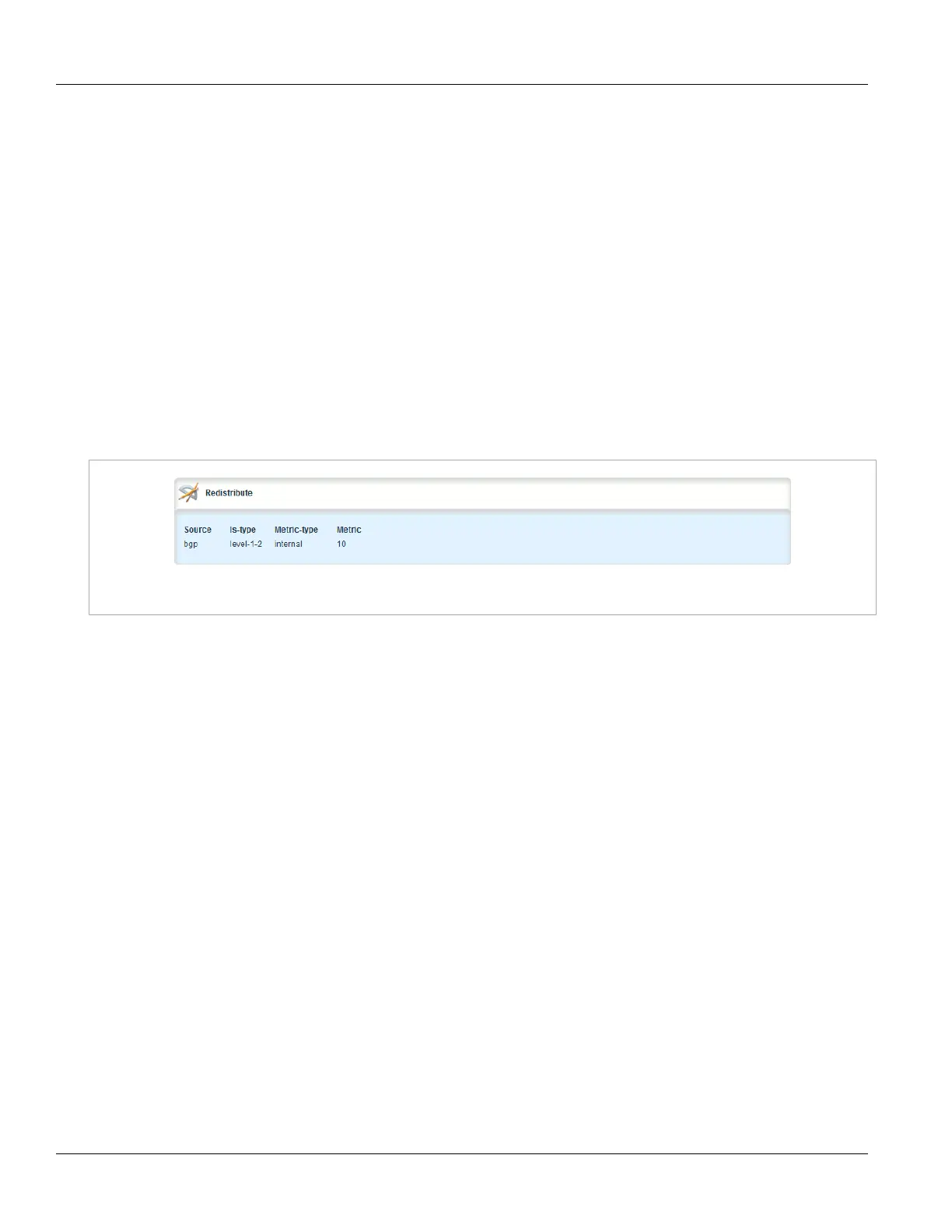 2. Navigate to routing » dynamic » isis » area » {name} » redistribute, where {name} is the unique name for