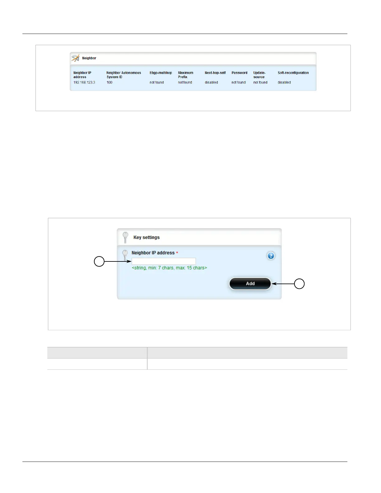 If no neighbors have been configured, add neighbors as needed. For more information, refer to Section 5.19.7.2,