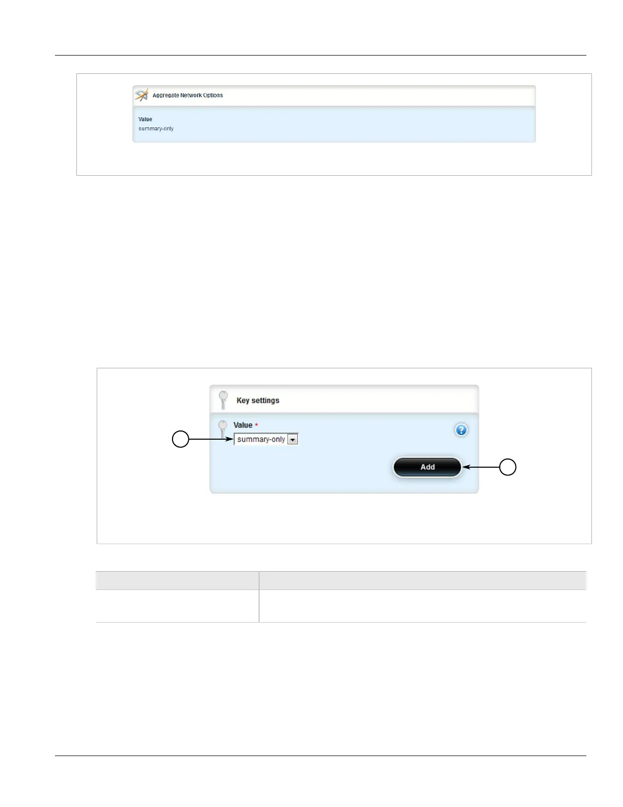 2. Navigate to routing » dynamic » bgp » aggregate-address » {address} » options, where {address} is the
