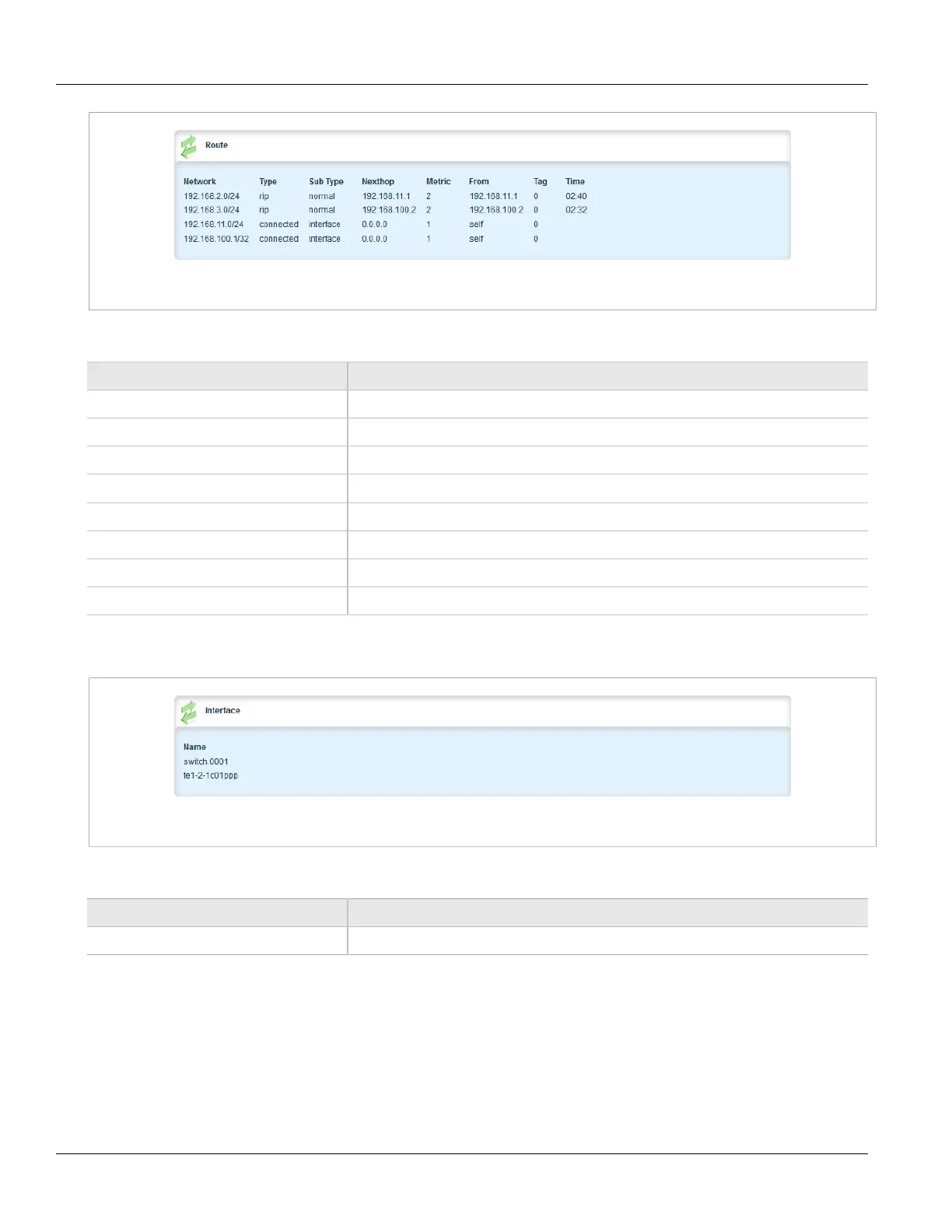 To view the name of the interface associated with the route, navigate to routing » status » rip » interface. The