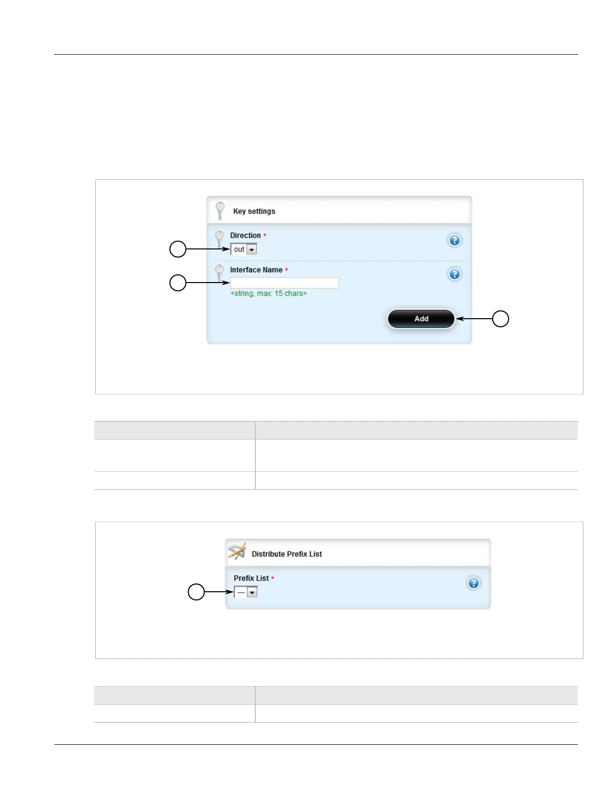2. Navigate to routing » dynamic » rip » distribute-prefix-list and click <Add distribute-prefix-list>. The