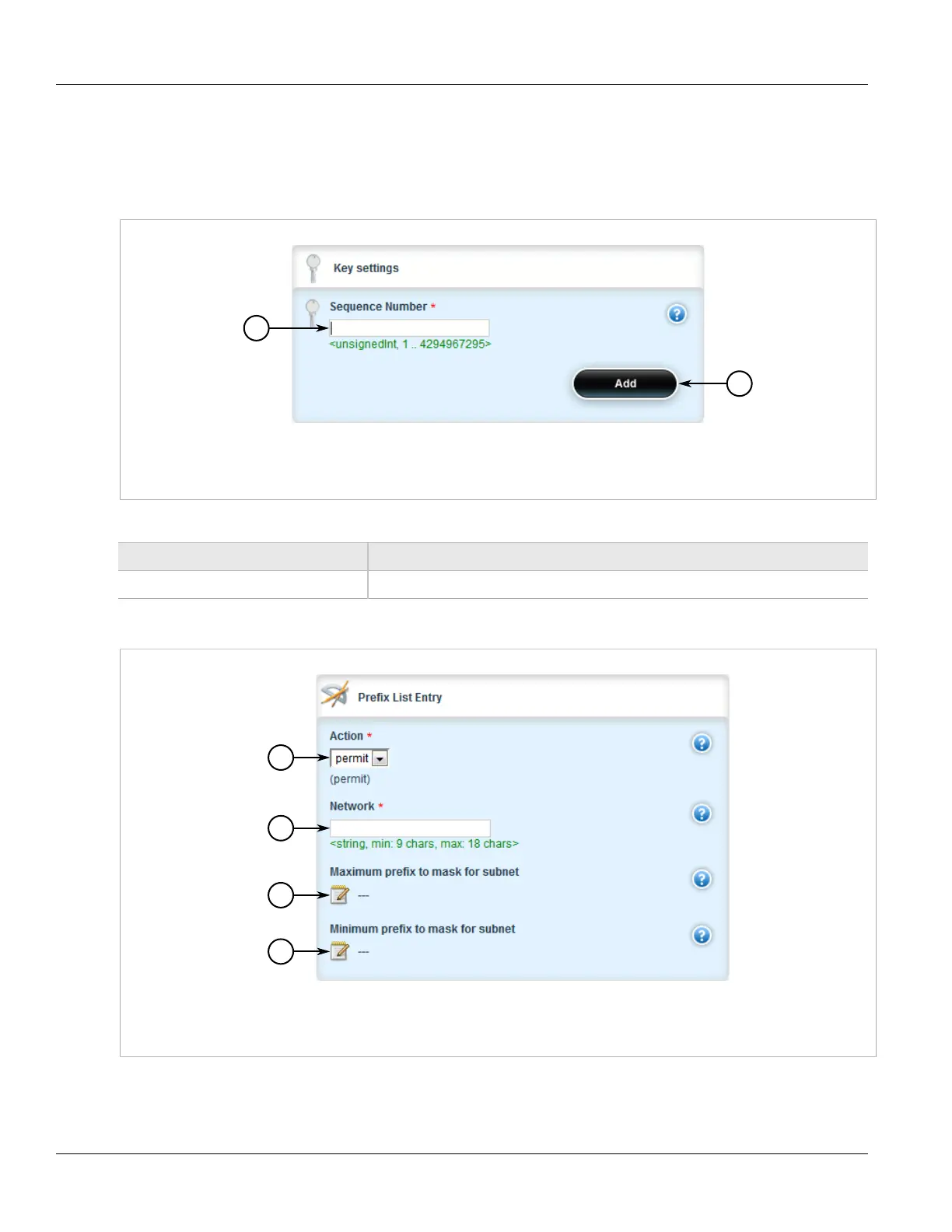 5. Click Add to create the new entry. The Prefix List Entry form appears.