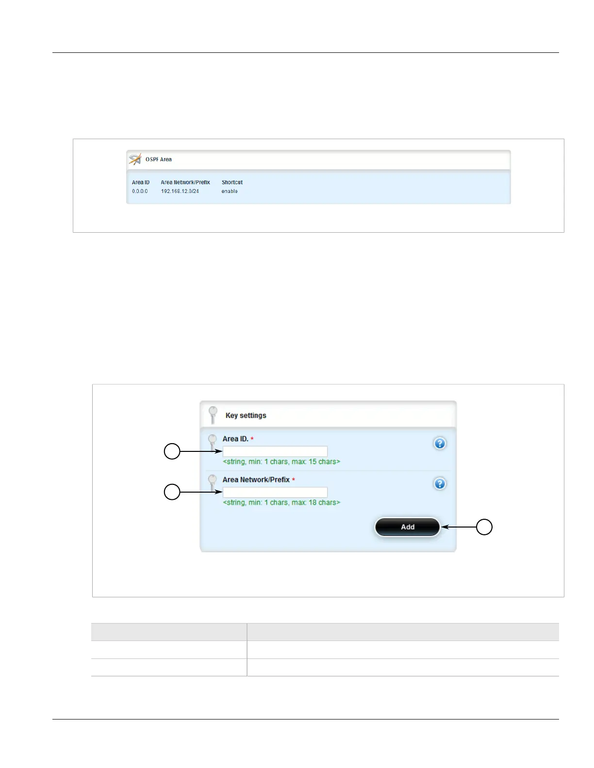1. Area ID Box 2. Area Network/Prefix Box 3. Add Button