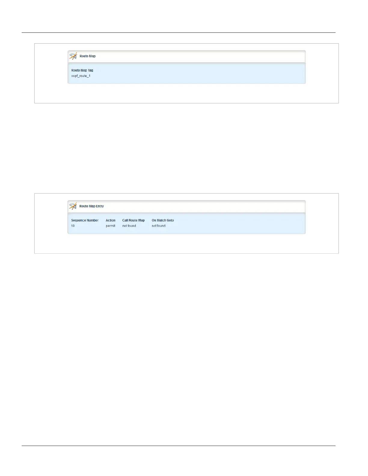 route-map » {tag} » entry, where {tag} is the tag for the route map filter. If entries have been configured, the