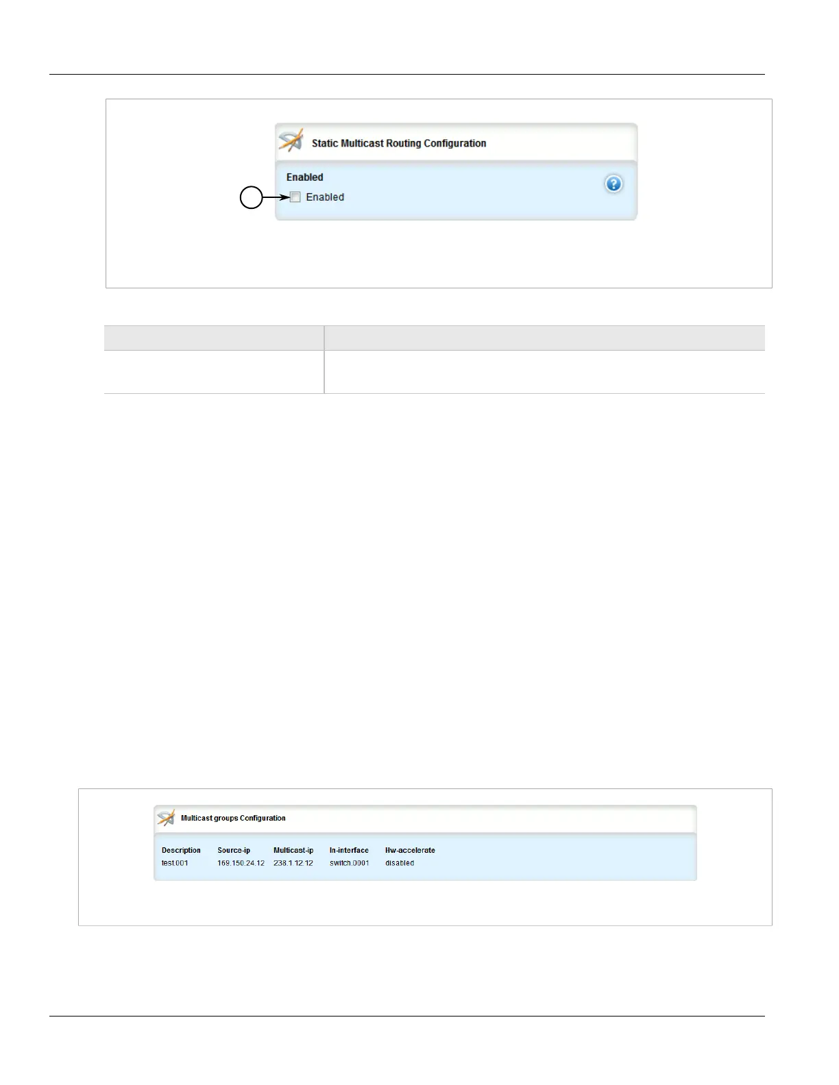 To view a list of static multicast groups, navigate to routing » multicast » static » mcast-groups. If static