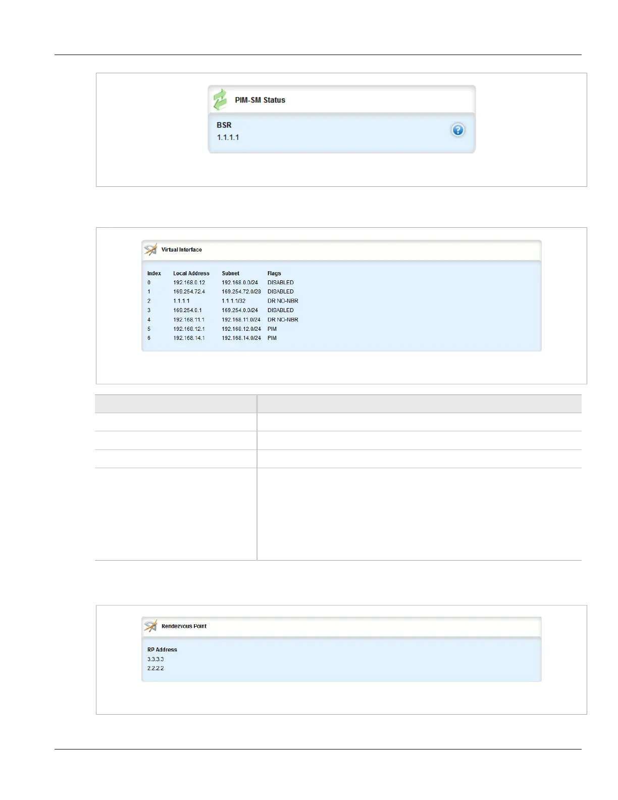 2. Navigate to routing » status » pim-sm » vinterface. The Virtual Interface table appears displaying the