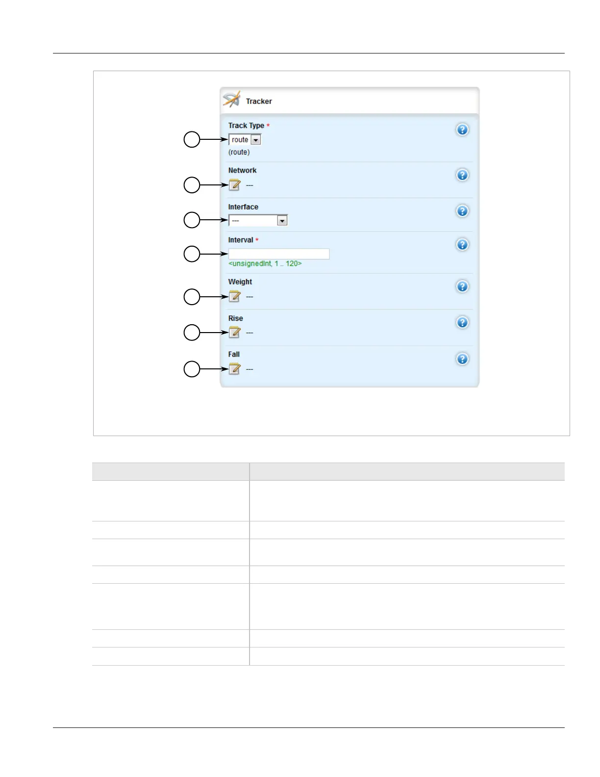 1. Tracker Type List 2. Network Box 3. Interface List 4. Interval List 5. Weight Box 6. Rise Box 7. Fall Box