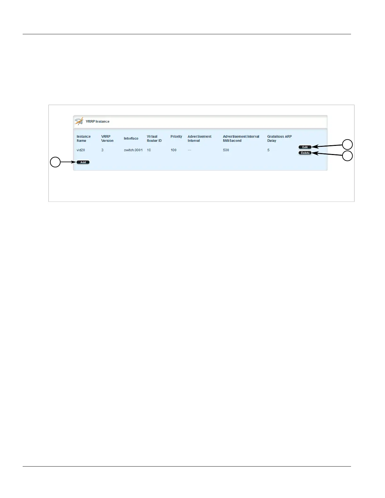 2. Navigate to services » vrrp » instance. The VRRP Instance table appears.
